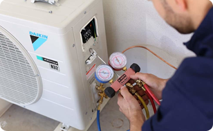 Делаем диагностику и замеряем уровень давления фреона в сплит-системе, при необходимости дозаправляем до рабочего давления